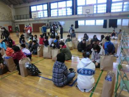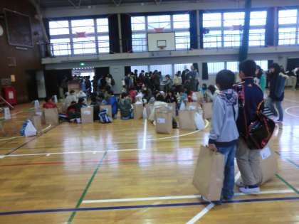 受付をすませた後、体操着やヘルメットを買って、小学校ごとに整列しました。