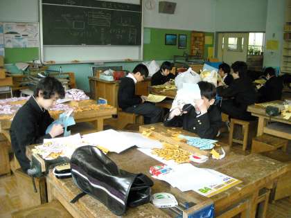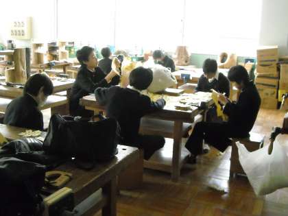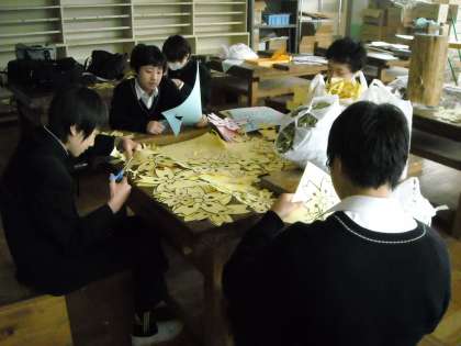 チャレンジ部は今日も新入生のための桜飾りを大量に作っていました。