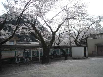 校庭の桜も午後からの風でいよいよ散り始めてきました。