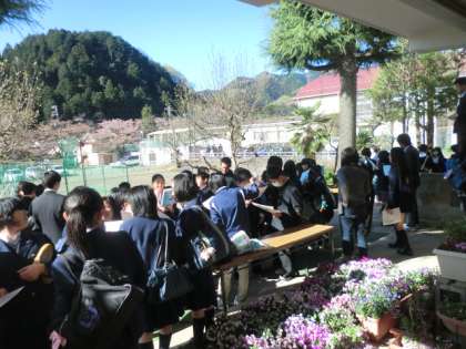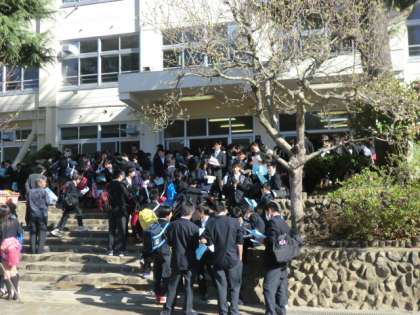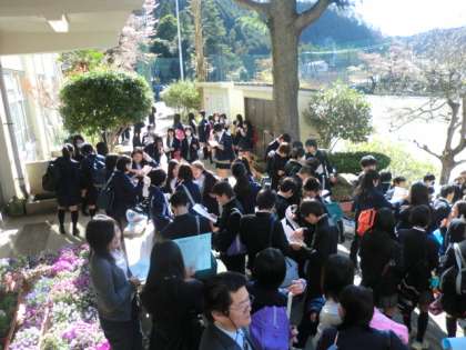 クラス発表もあり、ドキドキの登校風景です。