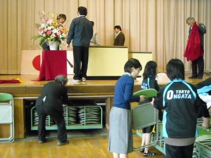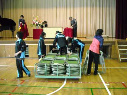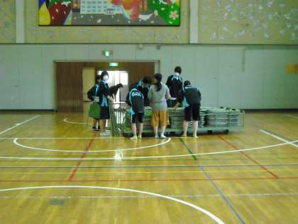 体育館の片づけは先生方と部活の生徒が中心になって行いました。