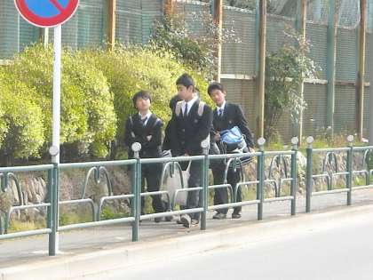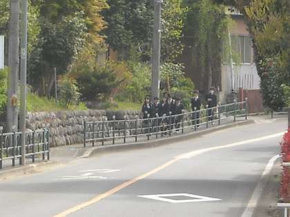 徒歩の生徒は陣馬街道を直進して来る者も多いです。