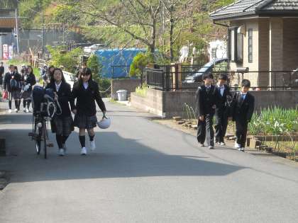 大多数の生徒は正門前の通りを通って登校して来ます。