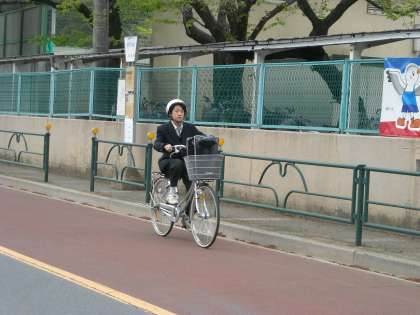 上からも徒歩や自転車や車の送迎で大勢が登校して来ます。
