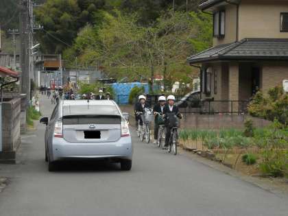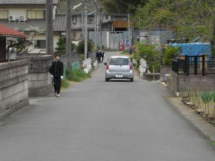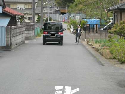 正門前の通りは狭い上に交通量も多いので歩行者も気を付けましょう!