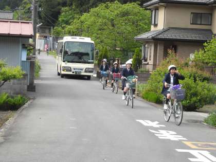 朝の出勤・登校時間で交通量も多いので、安全意識を持った登校が大切です。