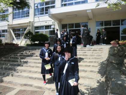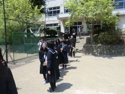 校庭での見送りです。