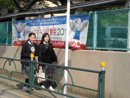 上からも徒歩や自転車や車の送迎で大勢が登校して来ます。