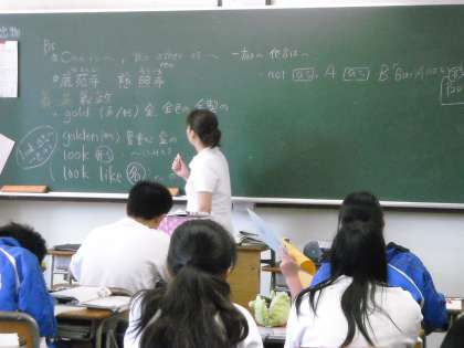 4組の教室では岡部先生が元気に授業をしていました。