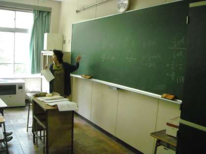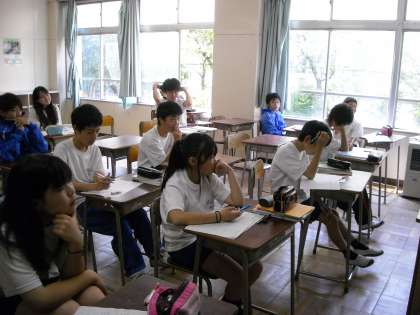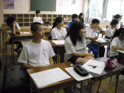 視聴覚室ではベテラン講師の小山先生が生徒とうまく問答しながらやっていました。