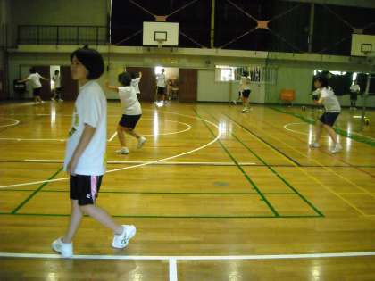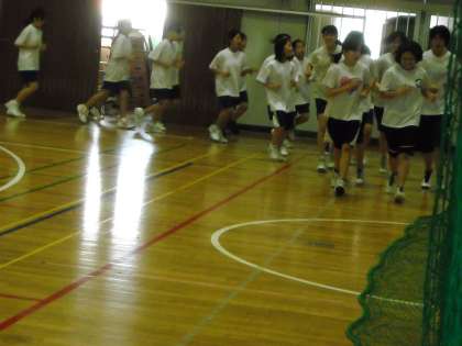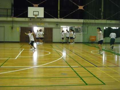 体育館の残りの半面はバスケットボール部です。まだ、ウォーミングアップの段階でした。