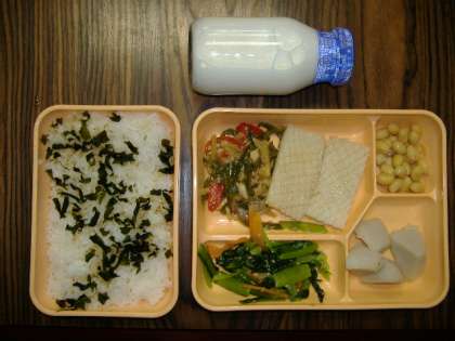 青菜のナムル・里芋の味噌煮・ぶどう豆・牛乳