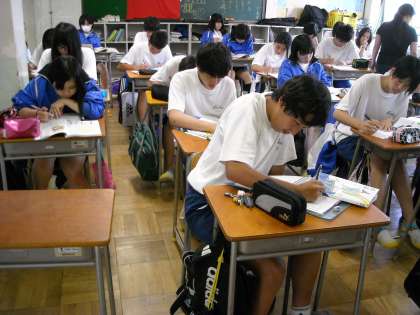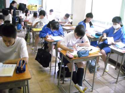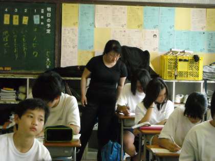 東郷先生が机間観察をしながらきめ細かい指導をしていました。