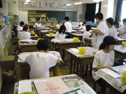 大町先生の指導で美術室で水彩画の準備をしていました。何を書くのかなぁ?!