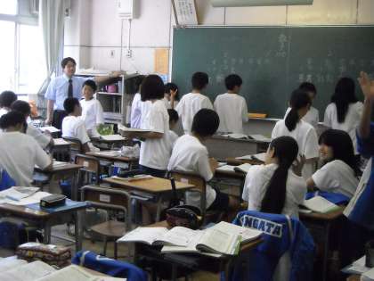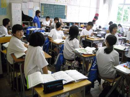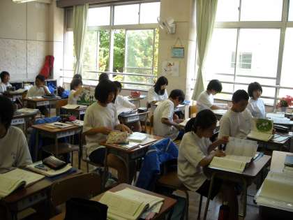 千田先生の指導で漢字の勉強をしていました。黒板に答えを書いています。