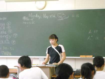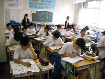 1組では岡部先生の授業です。教育実習生の徳田先生も真剣に参観していました。