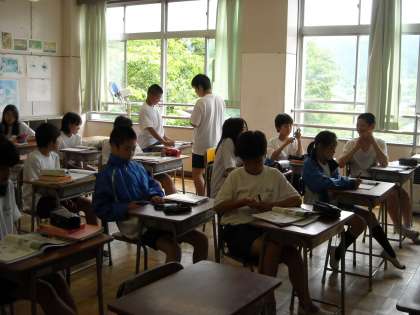 第3多目的室の菅原先生の授業ではペアワークによる会話練習をしていました。