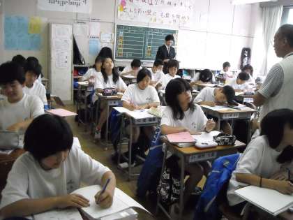 3組の理科の授業は粕谷先生ですが、やはり教育実習生の泉先生が参観していました。