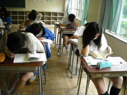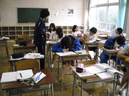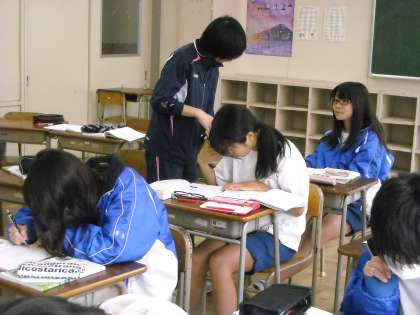 第1多目的室では吉田先生が机間指導しながら演習問題をやらせていました。