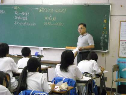 講師の平野先生が人類の祖先について楽しく教えていました。