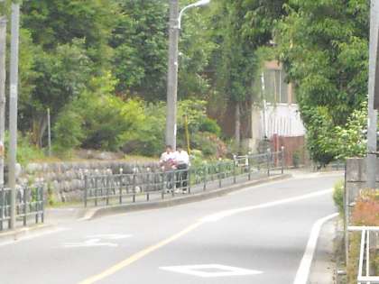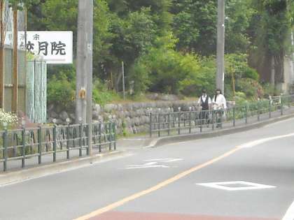 徒歩の生徒は陣馬街道を直進して来る者も多いです。ガードレールがあるから安全ですね!