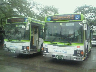 今日はオリンパスホールで狂言教室が行なわれます。生憎の雨で、教室から直接バスに乗って出発しました。