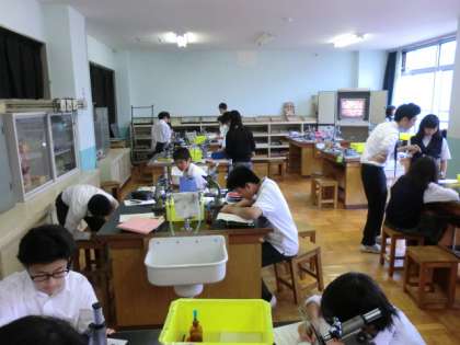 1年4組は、理科室で細胞の観察です。