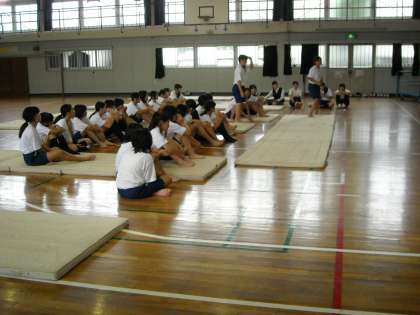 1・2組の女子は器械体操・マット運動の試験をしていました。