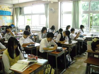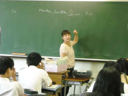 4組の教室では岡部先生がリスニングの準備をしていました。