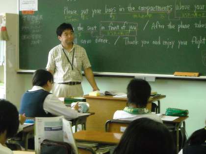 2組では菅原先生が真面目な顔で授業をしていました。