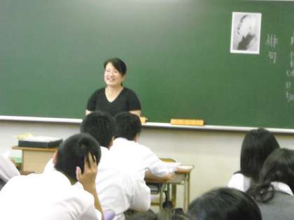 東郷先生が俳句の説明をしていました。校長先生が夏目漱石に似ていると光栄な言葉を生徒から貰いました。