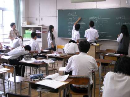 第3多目的室では指名された生徒が黒板に英単語の意味を書いていました。