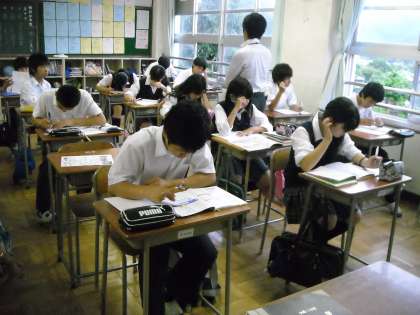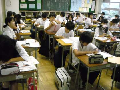 学活の時間ですが期末試験前なので本多先生が監督して試験勉強をしてました。