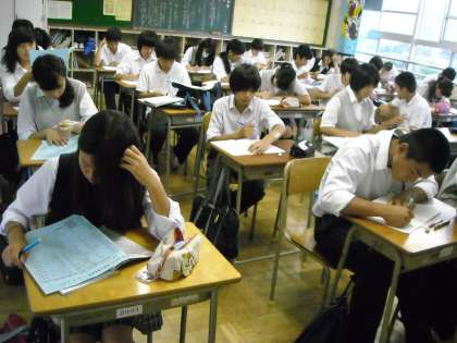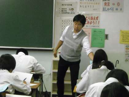 鶴田先生が静かに生徒を見守っていました。