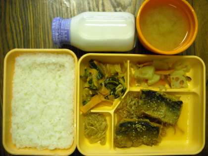 ごはん・にしんのあずま煮・れんこんの塩炒め・豚キムチ・なめたけ・みそ汁