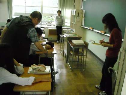 各階の普通教室の1教室を選んで黒板、窓際、中央、廊下側と照度を検査していきます。