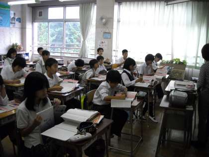 3組では講師の岡田先生が命令文・命令否定文について説明していました。