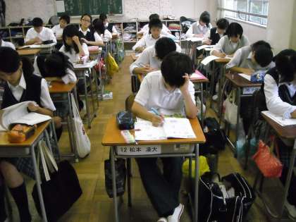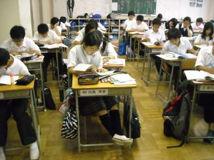 社会の授業ですが試験範囲が終わっているので試験対策の自習の時間です。