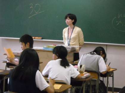 第3多目的室では鈴木先生がスペリング競争の準備をしていました。