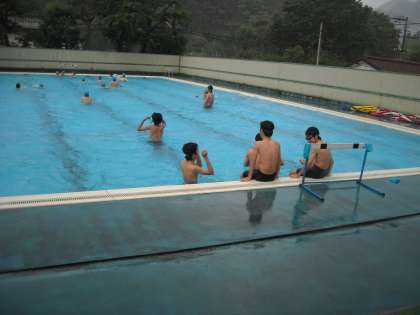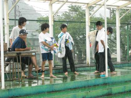 男子は水泳ですが突然の雨も気にしないで水球を楽しんでいました。