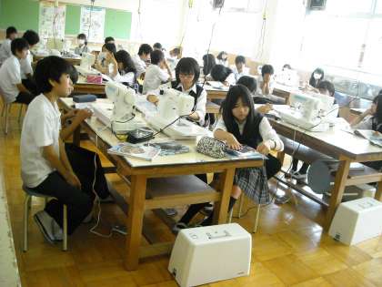 被服室でミシンかけの授業です。機械はうまく扱えるかなぁ?!