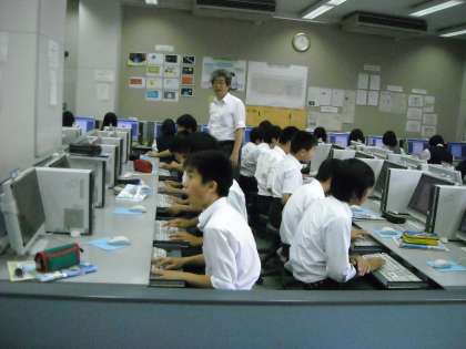 パソコン室でパソコンを使った授業ですが、ミシンより使えるかなぁ?!