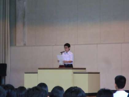 校長先生のお話に続き、生徒会長から地域行事への参加が呼びかけられました。