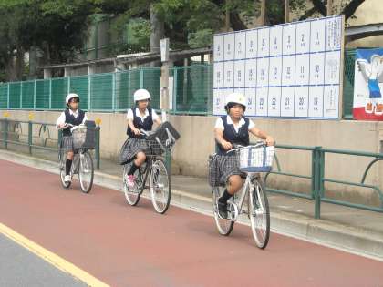 陣馬街道は交通量が多いので特に自転車は交通ルールを守って登校しましょう!