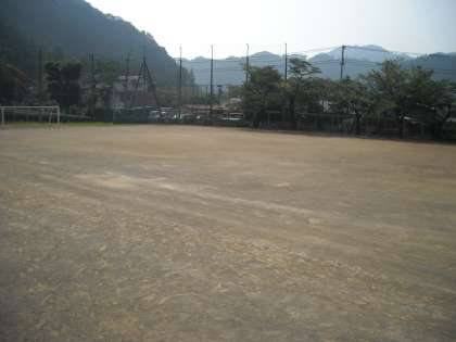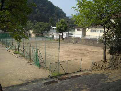 校庭もテニスコートもカラカラに乾いて真っ白です。ブールだけが青々としています。