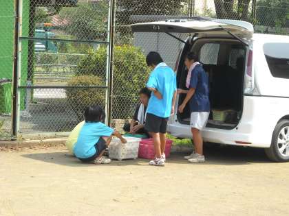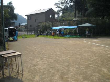ソフトテニス部は多目的広場で活動の準備をしています。