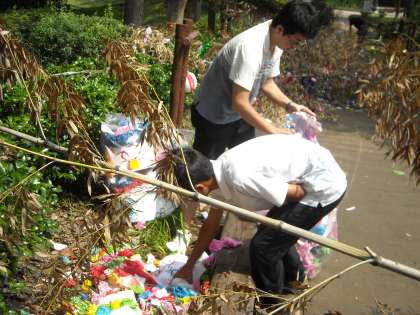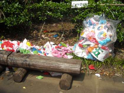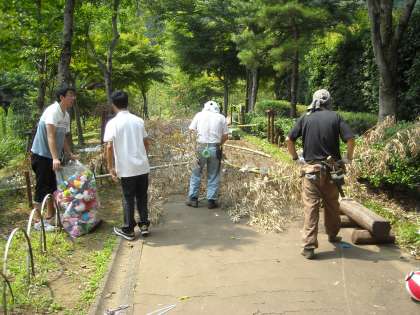 業者の方が予め竹を倒し、飾りは外してくれていましたが、鶴田先生とボランティアの生徒で落ちたものを綺麗に回収しました。