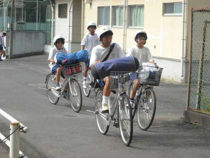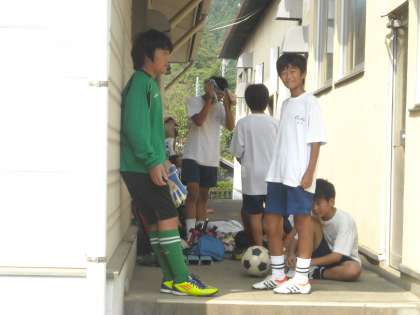 サッカー部の生徒が登校して来ました。これから練習開始です。