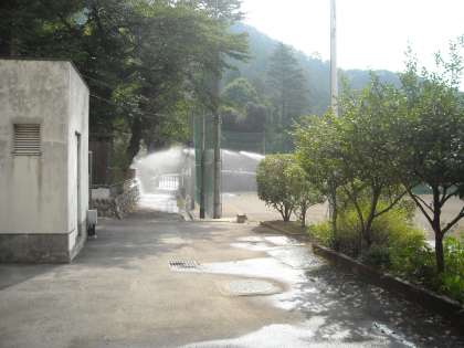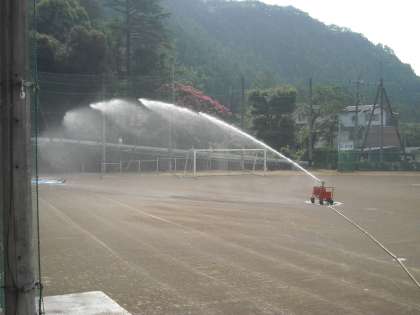 校庭水撒き1