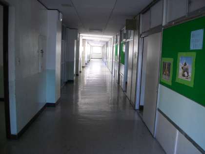南校舎の廊下は静まり返っています。